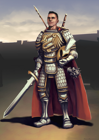 Lord Franz, Baron Torkeep, ruler of Torkeep Fortress and leader of the Shield Knights.This is one of the pregen characters from Gary Gygax AD&D 1st edition module "Isle of the Ape".