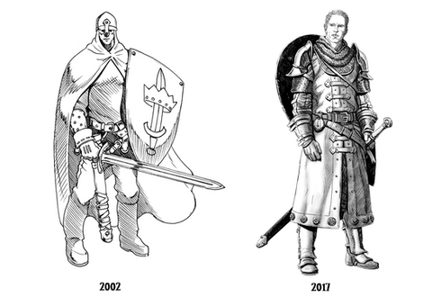 I liked the design of his plate armor a lot back then, it was my first clumsy attempt at drawing a realistic/fantastic armor.