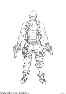 For today's post, something a little different.I decided to redesign a character that I drew relatively recently: Solomon Alexander aka Panzer, whom you can see protrayed in a piece called "The Mercenary" from 2011.