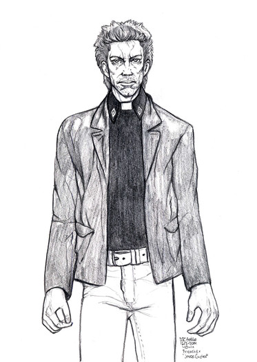 Father Konstantin Muchhausen, ex Vatican State spy, turned mercenary.Character concept from an ongoing "low cyberpunk" RPG campaign I'm playing in.
