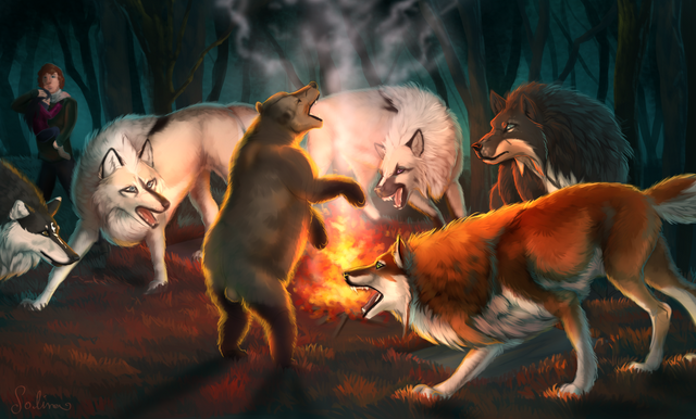 Your art has improved so much over the years! I'm really and honestly deeply impressed. Very nice action in this one and the dogs look very natural