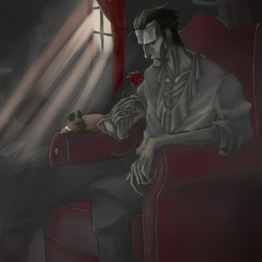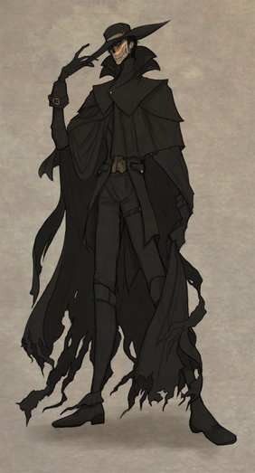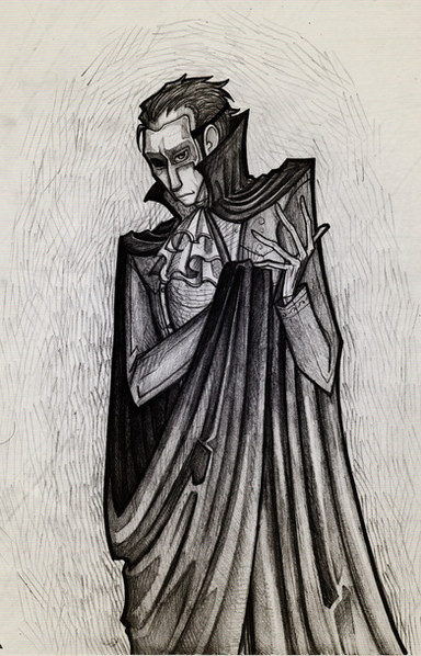 Forgive me, but he looks a lot like Pitch Black from RotG here, albeit with more exaggerated proportions. They both have yellow eyes too, which makes the connection even more dramatic. I like what you did with the full facial scarring (I'm sure there's a mirror set on the right side that we can't see.) and the thin, tapering fingers.