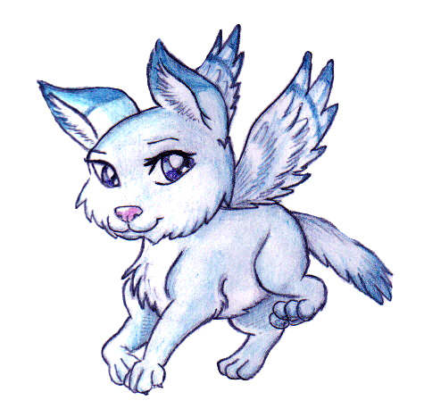 At first glance I thought 'aww, a kitten with a fluffy tail and wings'. Then I looked closer and thought 'it's kind of devious looking, isn't it?' Then, I scrolled down the full view and I notised the extra set of paws and read the description XD The design's tight!