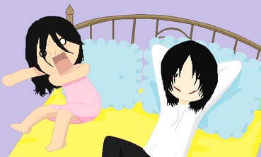 *whacked Jeff in the face with a cooking pan* HE EITHER CRAWLED THROUGH MY F**CKING WINDOW OR WE GOT KIDDY DRUNK AND I FORGOT.