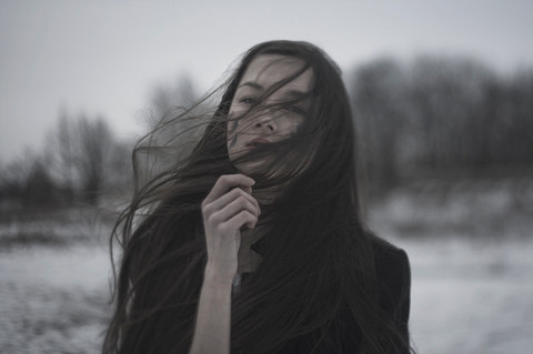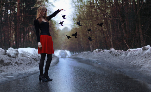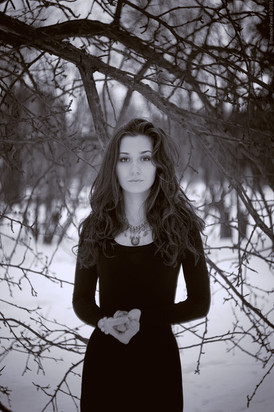 Her eyes are amazing, black and the paper in her hands. So surreal and unearthly.