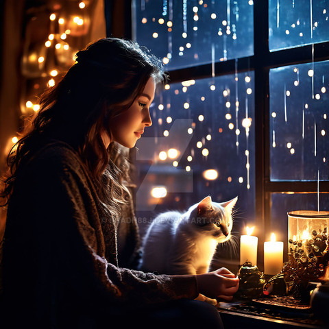 Why is the sittimg girl scattering glitter in a clasping motion before a cat so 'hot'? I want answers!