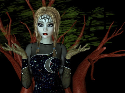I used Poser with an Aiko3 model and I think the belly arms are from a velociraptor.