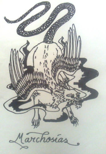 A three-headed monster, with the foreparts of a lion, the middle-parts of a goat and goat's head rising from its back, and a serpent-headed tail.Related content
