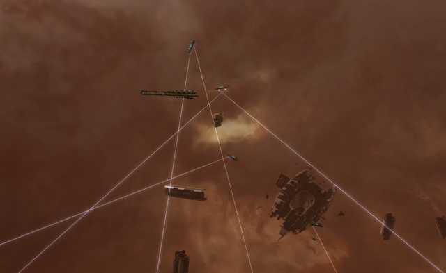 from Eve: onlinethis is from the only mmorpg that I have ever played that I actually miss. It's been almost a year since I quit due to school and work and I still daydream about this game. It's probably one of the most gourgeous games ever period and it's huge. try like over 5000 unique solar systems and growing and usually about 10,000 other players at any given time of day. I was working on getting my money and skills up but I got a little annoyed with having to wait to learn skills in stead of leveling but I admit it's better than killing rabbits for 20 hours just for one level^^