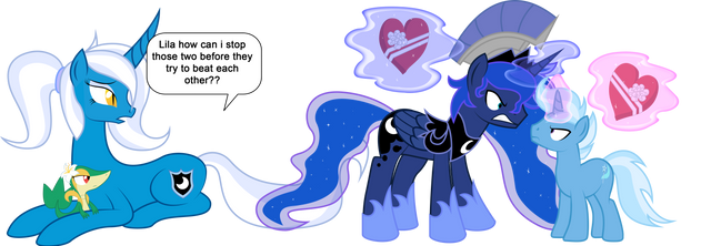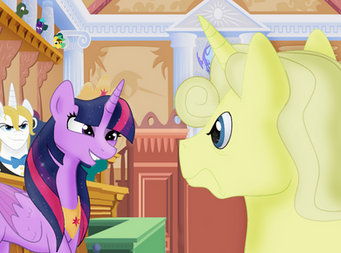 well about this pic ummm i dont know i just made inspired in that animation of Ace Attorney wiht the ponies as you saw in that animation trixie was the prosecutor in this case Soma and Twiligth is trying to help Trixie because they know she dindt do anything but the Prosecutor is a though oneArt by me