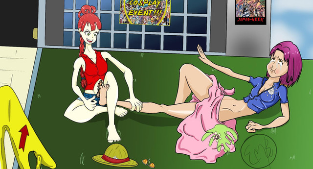 Also fantastic job on their body expressions. The way Cindry's feet are moving, Perona's fingers as she hold the feather, the way Perona just has the one leg pinned while the other squirms free, it's just a very wonderful image over all and it certainly makes me smile XP
