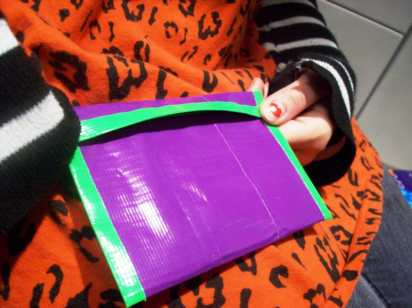 Very fashionable. Duct tape is great. I've gotta get some of this leopard stuff! Your wallet is super-cute!
