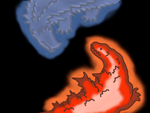 Dumb ideas are the ones I tend to draw the quickest. If I finish it in the same day I started drawing it then its a rare occurence. This picture and the one of Dream are examples of thisbtw I called him "Godzillasu" because Godzilla Asu is Godzilla Earth's name in Japanese