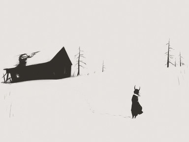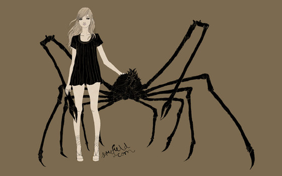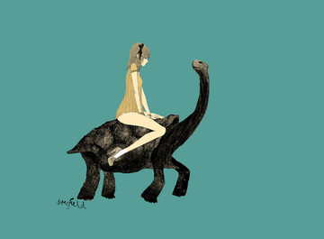 The hare, especially in the colour its in, looks extremely spooky... But amazing at the same time. Reminds me of blood, and danger which the girl seems oblivious to. Well, thats just my take on it.