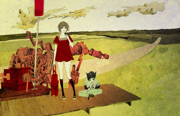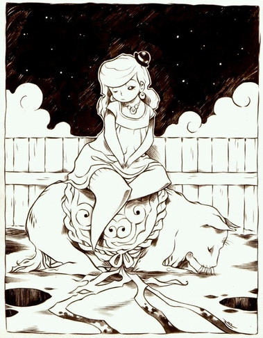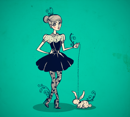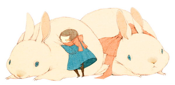 the difference in styles b/w the girl and the rabbit (and the rabbit's coloring) is awesome, i think that what makes it hard for me to look away from it