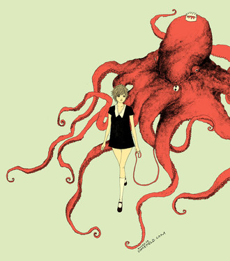 It's on the surface pretty innocent and sweet, but something about the way it's drawn feels dark or a little bit sad. Really nice use of red.