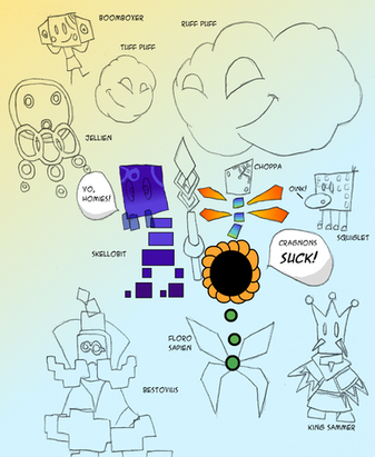 For a 500 follower event on Twitter, I asked my followers which characters they would like me to draw as origami figures. These were the most voted ones. And it was done several months late.Bunger, Ena and Kia