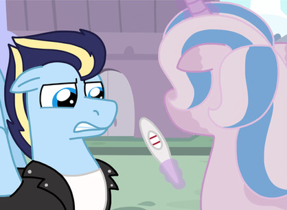 I totally didn't forget that Cadence was expecting a second kid in my story!There she goes waddling down the hall, when all of a sudden, the foal starts kicking up a storm.