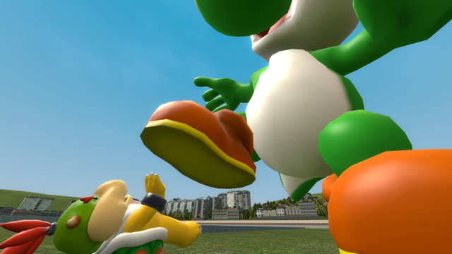 Bowser found a sleeping Yoshi on the roof of Peach's castle and decided to compare the size of their feet.Related content