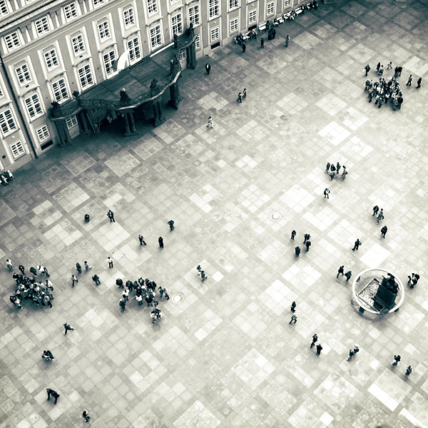 Gorgeous photo. The colours are great and nicely saturated, and a lovely contrasts is present - that makes the details of the building stand out very well. That red t-shirt is an interesting contrast to the blue and white of the rest of the photo.