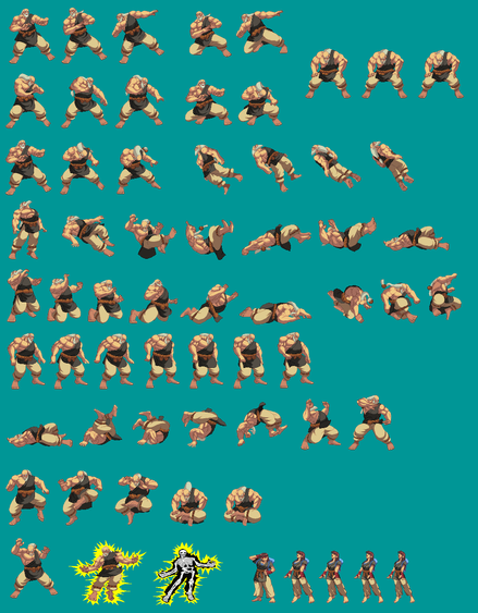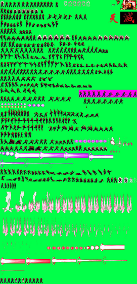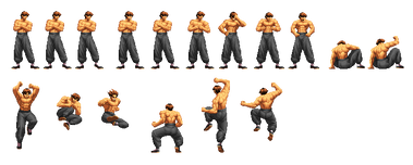 One of the poster boys for SNK Boss Syndrome, it's Omega Rugal as seen in KOF 95.Sprites by Ahuron and a Mr. Karate fellow who is not a member of the Sakazaki family; Rugal himself belongs to SNK Playmore.