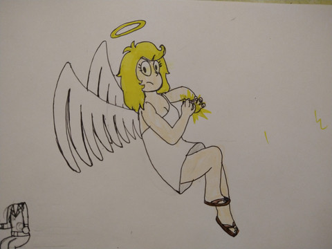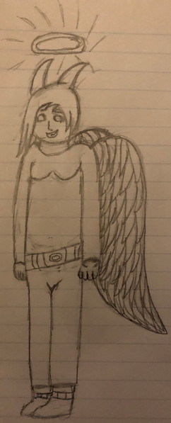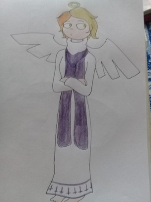 Here's Puck Reverie's human form, as in the form Puck takes on when he's exposed to moonlight. He hides from others so they don't have to see his hideous form as a human. (He's not even hideous, he's just super self-conscious about looking like a full blooded angel because he doesn't want to take after his father's appearance)Artwork © Me