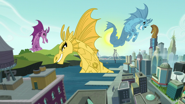 Now that the humans weren't bothering her, Smolder turned to Silverstream--and couldn't stop herself from giggling. The Hippogriff wasn't doing clawstands anymore, but sitting in the bay and holding a tiny Human boat up to her face; inspecting it and the tiny passengers inside like a filly would a new toy.