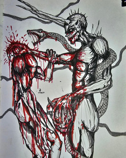 #blood #demon #graveyard #horror #horrormacabre #inkdrawing #shovel #sketche #skull #skulls #spikeyhair #violence #horrorartwork