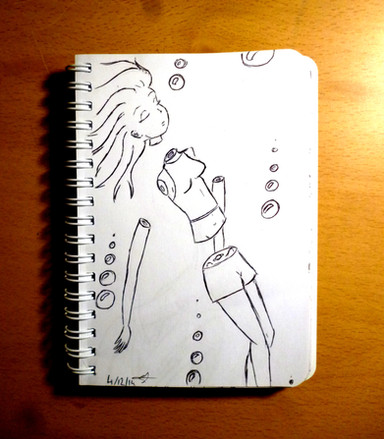 This drawing represents my experience with anorexia.The two figures, representing the self and the intruding 'ana' mind set, are being fed through the nasogastric tube which in turn is being filled by the constant flow of their own blood. An everlasting cycle.