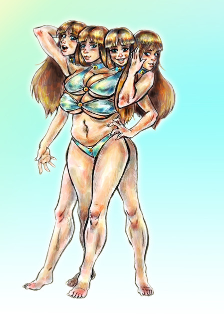 Fantastic pose!! Β It really shows off her sexy tri-breast!! Β Wonderful job depicting her tri-leg anatomy, too. Love the 6-fingered hands as well!!