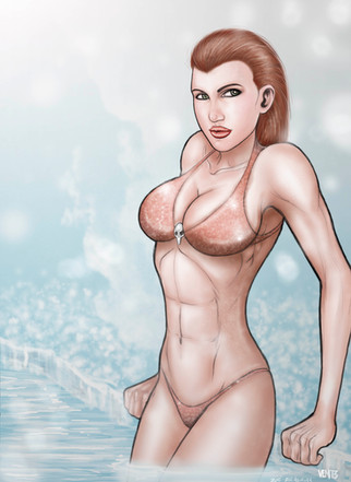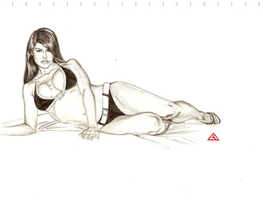 Raquel enjoying the sun by her pool.This was a blast to draw.