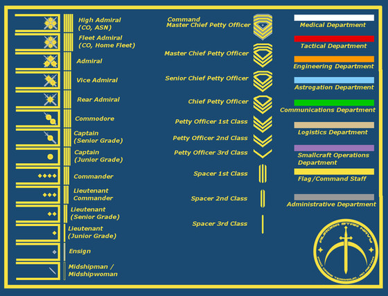 Navy ranks made by me, inspired by our modern day Naval ranks.Attention: Permission to use these ranks is granted only to Imperial Reach moderators/leadership until they either disband or leadership decides they no longer need them.