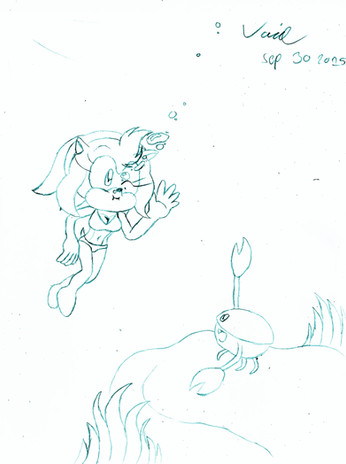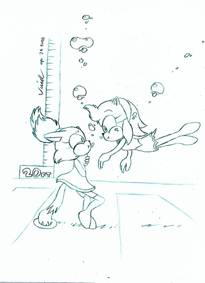 Commission for *KairaAethericBeast .He suggested an underwater picture of Amy and Cream. I gotta say, after utterly failing to draw Amy last time I had a commission like this, this one turned out pretty well.