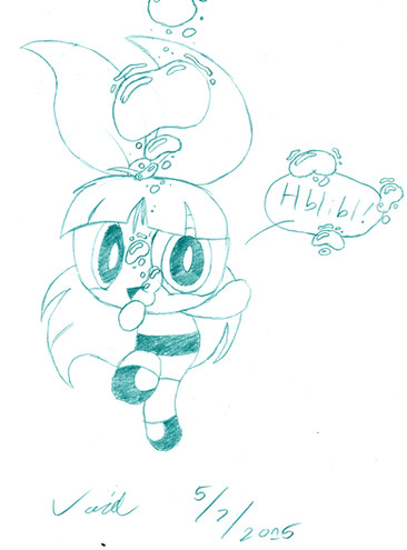wow, this is awesome, and a nice concept too! I like the idea of her being afraid of water I never thought about that! Or the other idea, it's pretty sweet too. You have a nice puff style ;D