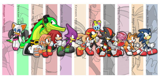 for 20th anniversary of sonic the hedgehogthere are sonic, tails, knuckles, eggman, amy, cream (& cheese), shadow, rouge, omega, silver, blaze, vector, charmy, espio, jet, wave, storm, marine, metal sonic, & emerl =3
