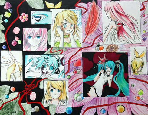 Like the surreal, collage-like approach to the art concept with plethora of symbols, makes for profound hinted storytelling. Also the fact that each variant of Rin has a different art-style adds to the chaotic business of her motion & thought. Not to mention that she's beautifully realized here~ Great job here!