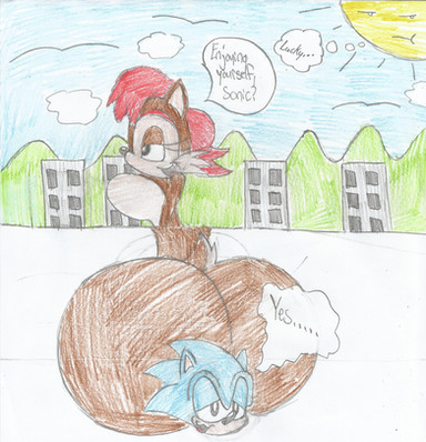 Sonic: Zooooom (stop) WHAT THE.....WOW! (Boom-baba-boom-baba boom) hubba hubba he... hey there