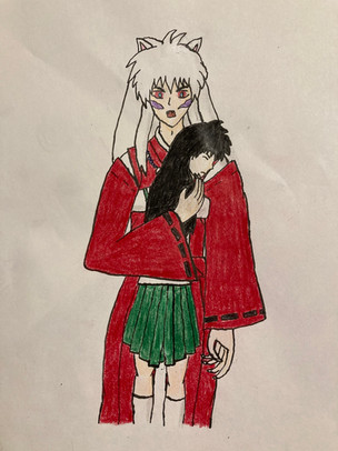 Day 4 of InuKag week 2019. Part of me always wanted to draw something like this. Kagome falling asleep in Inuyasha's lap, and he has a moment to think about her."Hmm...Kagome...My beautiful Kagome..."