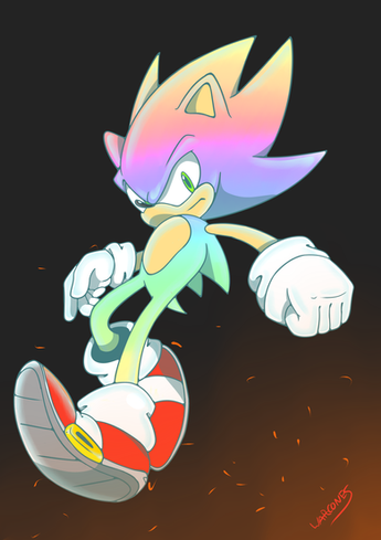 Here is the long lost hyper Sonic. I love this dude, yes we've somehow found a way to bring his rainbow-briteness back and into our comic series. btw, first comic is done and we've finished 5 pages of the second... we'll let you know when it'll be postedI love his superness, it makes me so happy.