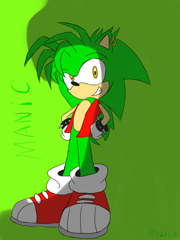 Manic would probably be a game breaker if they were to ever be placed in Sonic Riders. Great job on drawing him by the way!