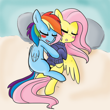 Fluttershy has become Rainbow Dash's second vampire fledgling. They cuddled after.