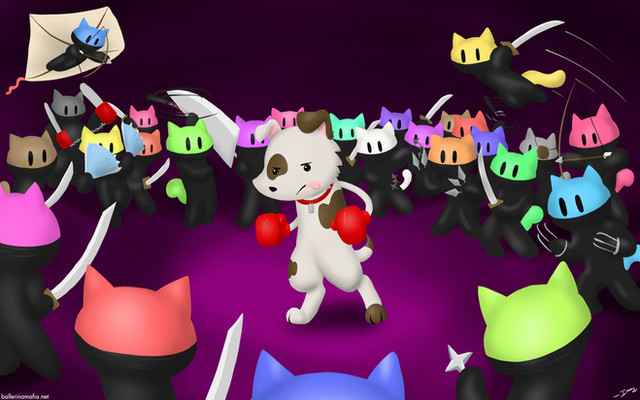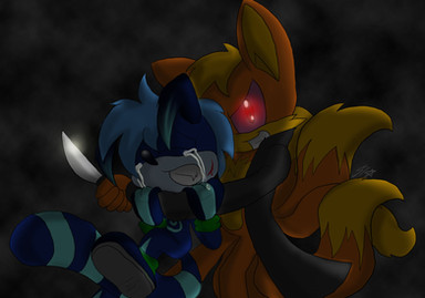 Commission for Vixenchan. The story here, I'm pretty sure, is that she was once a male assassin, turned into a young fox girl. Didn't stop her career, far from it - those super-cute puppy dog eyes can go far.Related content
