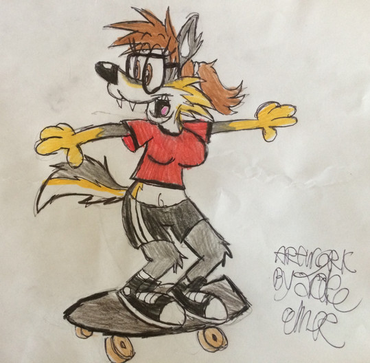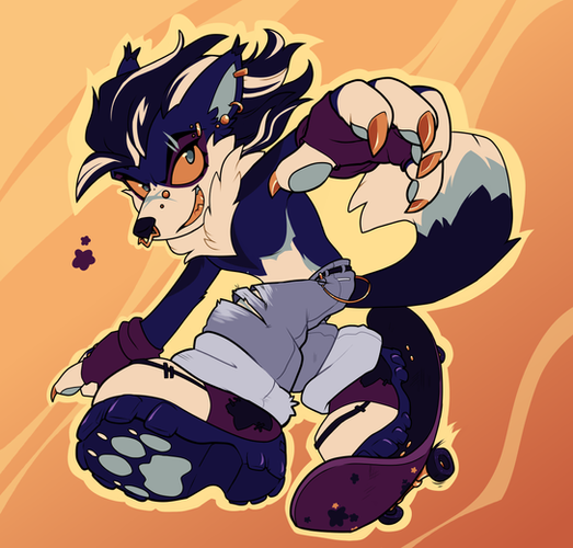 #animal #beanie #cute #female #furry #goat #grab #horns #mammel #shorts #skateboard #skateboarding #spats #tomboy #caprine #blonde_hair #crop_top #sonomatic #mid_air #belly_button #abstract_background #sleeveless_shirt #exposed_thighs #open_mouth_smile #zipped_shirt