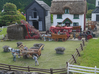 I have even serie of tutorial "comics" about buiding them. Actually not very complex. I did now schoolhouse and seen first time how complex are roof made of stones or plates, what are straight and have beams on edges. Thatched roof was just layer of abraded polymer clay on temporary shape.