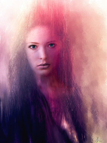 Wow, the realism is just gorgeous. I love the focus on her face, and how the rest of it sort of fades out into dark, blurred colors. I love her dark eyes as well.