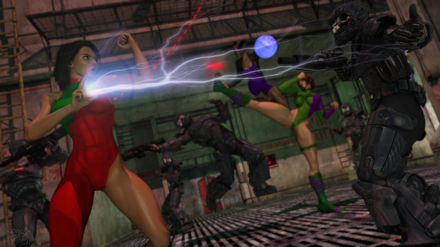 Cool action scene. Looks like the lovely heroines are having quite a fun time.