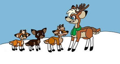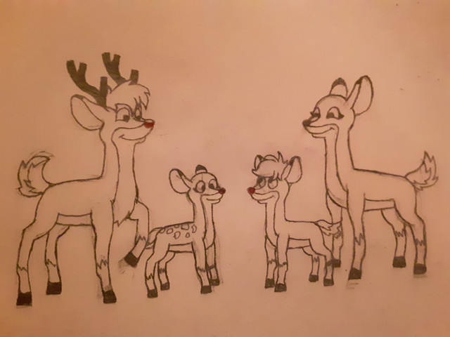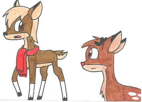 Done for Christmas.Here is Bambi, Tod and Fox (AOFW) meeting the two Rudolph's (from the 1964 and 1998 films) as it snows.