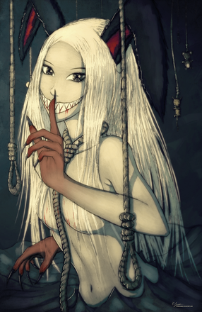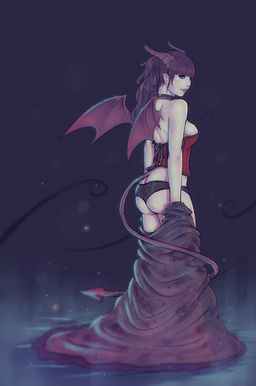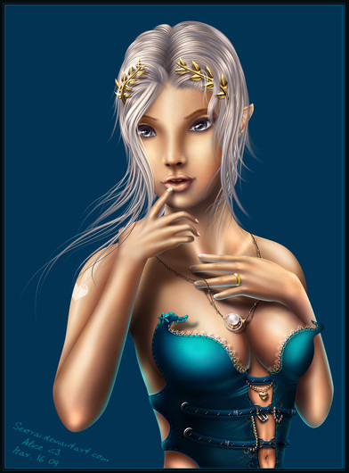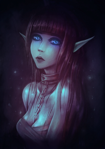 Oooo, she looks like she is tempting somebody. I love how she looks so sexy and dark, it fits the title "let me in." Her glowing earrings are really cool, to me, they act as a hypnotizing thingy that makes you desire her