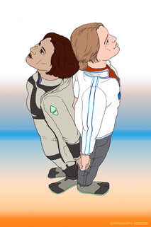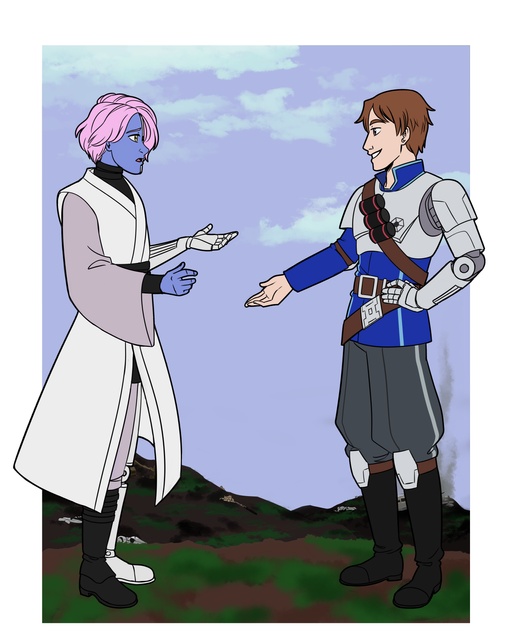 This started as a speedpaint but then the coloration changed it into a painting like thing. And then there was so much fun doing this background (and it is really not often that I like doing backgrounds... so...). So I don't know what to call this piece... but I guess I like it.It shows two of my main OCs: On the left Elgin O'Keefe former Elahi Ocqierah Khaatir and on the right side Magister Navis Noritchcka Uakappan from Cadence. They both meet after Nori rescued one of Elahis people from interrogations by the Xiantiao Special Forces. As former XSF members, Elahi and his team were caught in a trap after accidentally getting sensitive government information.