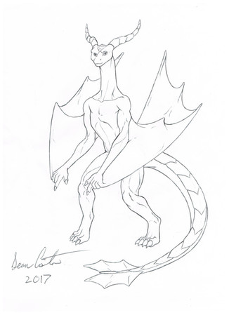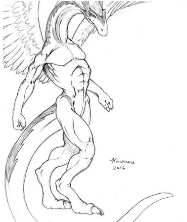 while Gene is a fire drake and this doesnt stand as an example for the other elements appearance, he is a good example of basic drake anatomy and an ideal example of a citizen so i have decided to draw him unclothed and in a basic stance for future reference and acting as my updated pic of drake anatomy. before anyone asks, this image is 100% accurate to the anatomy. i have left nothing out but the wings which i may add later.
